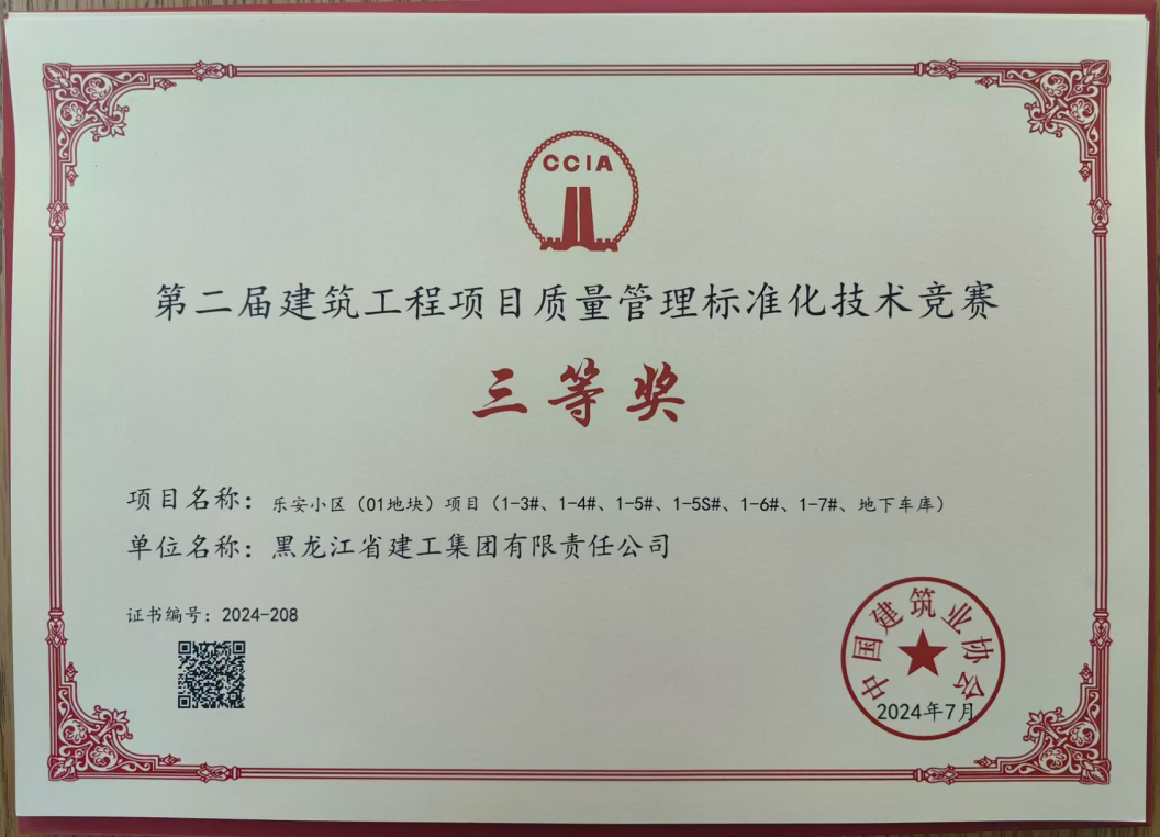 第二屆建筑工程項(xiàng)目質(zhì)量管理標(biāo)準(zhǔn)化技術(shù)競賽三等獎